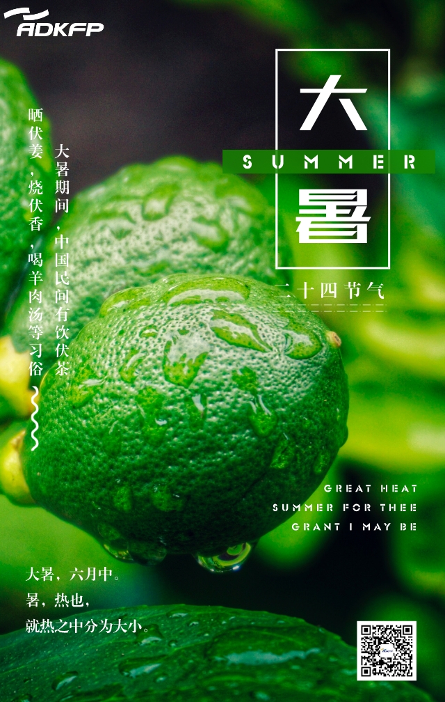 大暑,是農(nóng)歷二十四節(jié)氣之一,太陽位于黃經(jīng)120°。大暑期間,中國民間有飲伏茶,曬伏姜,燒伏香,喝羊肉湯等習(xí)俗。